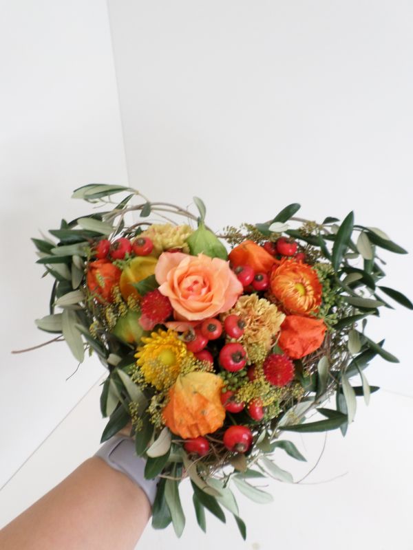 Ein zartes und liebliches Herzarrangement (keine Vase notwendig).