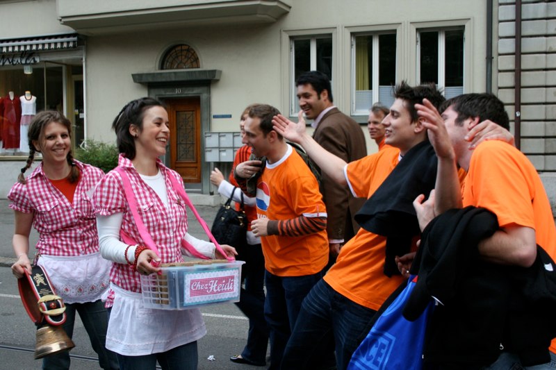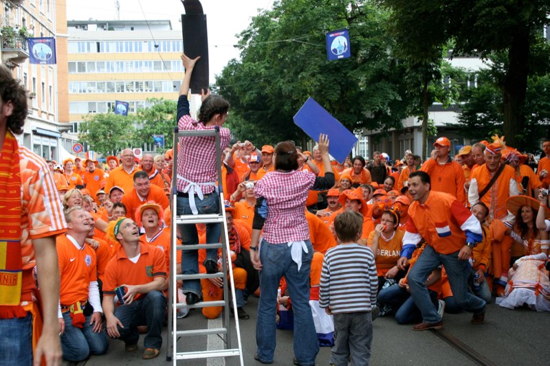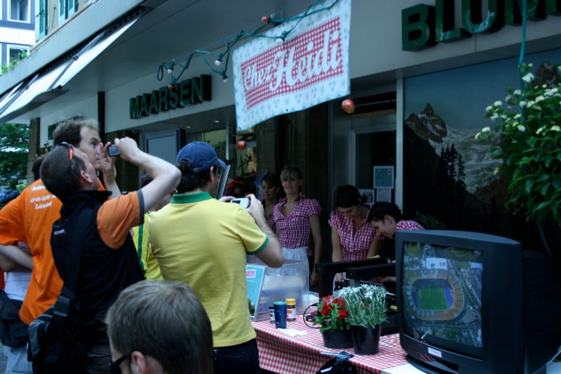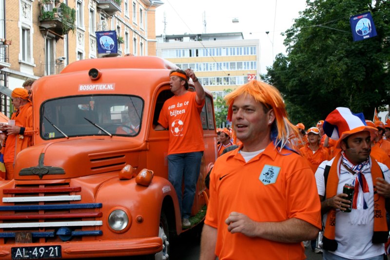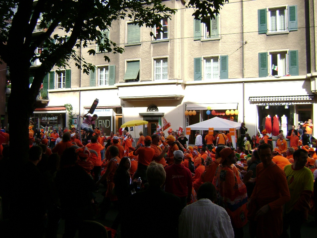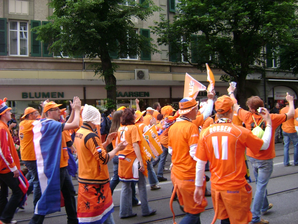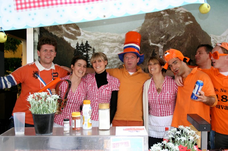 Das Geschäft von Blumen Maarsen liegt an der Fan-Meile zum Stade de Suisse in Bern. Die orange Karawane der Holland-Fans zog bei uns vorbei. Natürlich hatte Christiaan Maarsen (Holländer) eine riesige Freude.
