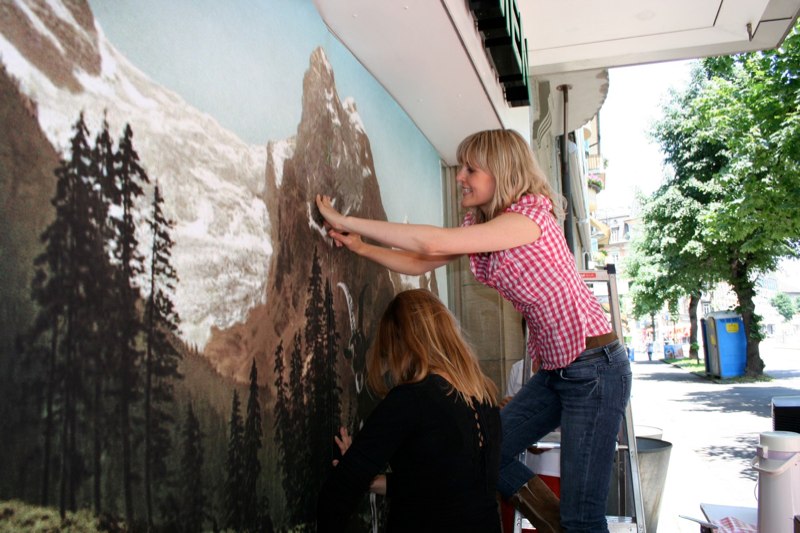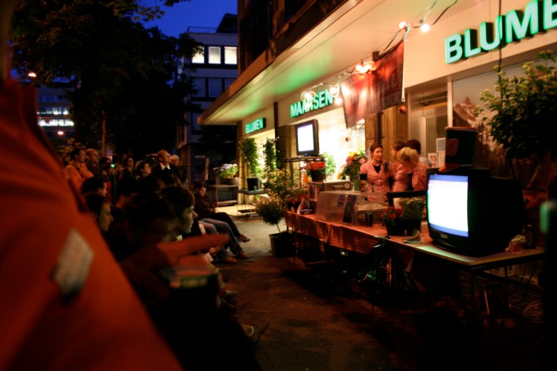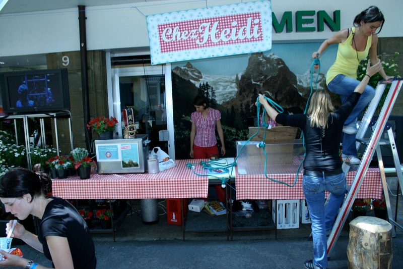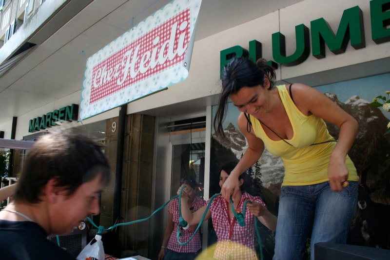 Vor dem Geschäft von Blumen Maarsen bauten die Heidis ihre Heidibar auf: