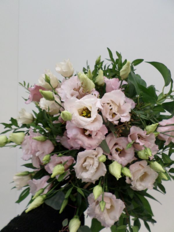 Die sonntagmorgendliche, romantische Stimmung wird durch die samtenen Farben der Lisianthus-Blüten und weiche, verspielte Dekorelemente erzielt. Dieser Strauss könnte am Sonntagmorgen das Brunchtischchen am Bett verschönern und die frühen Sonnenstrahlen durchs Fenster einfangen. Vase exkl.