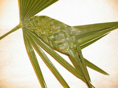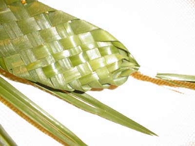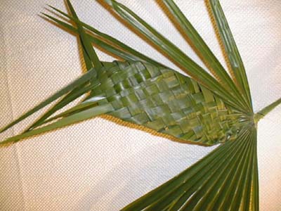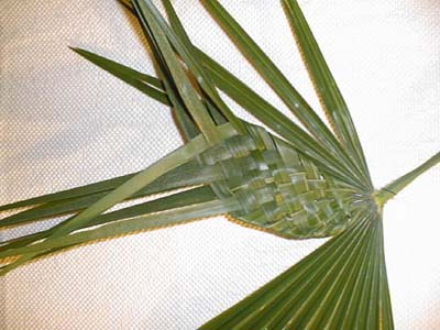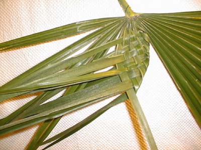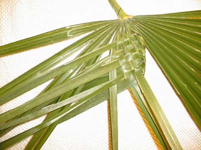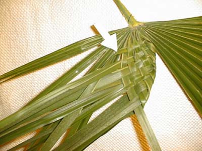 Anleitung zum Binden eines Dekorbandes aus Palmenblättern