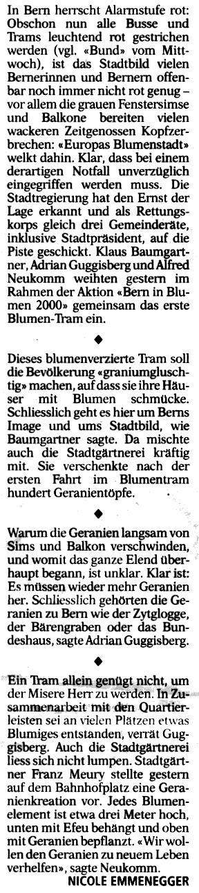 mehr rote Farbe sorgt die Aktion "Bern in Blumen 2000": Sie initiierte