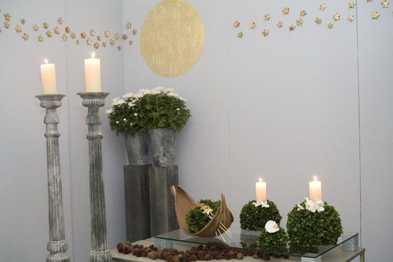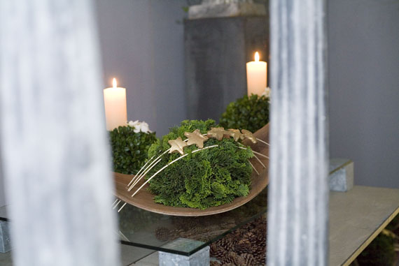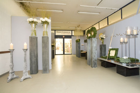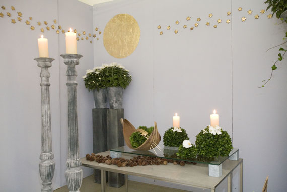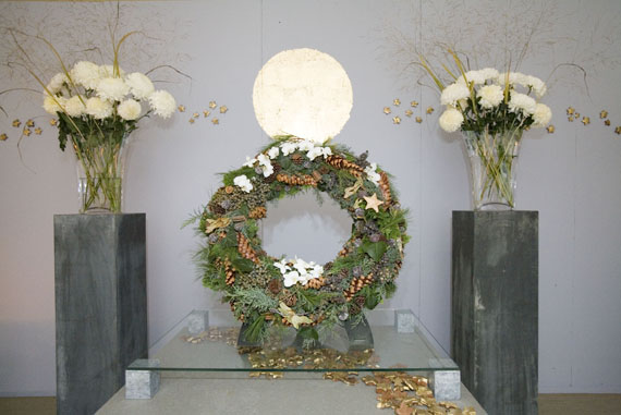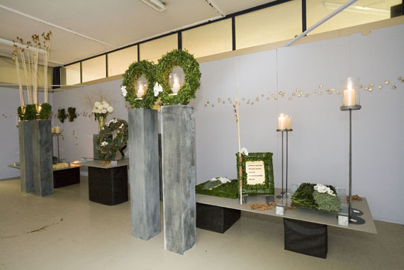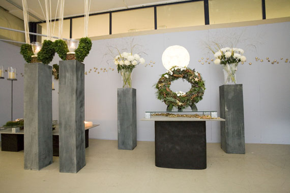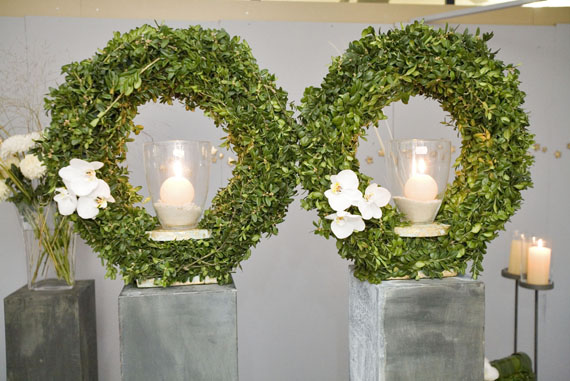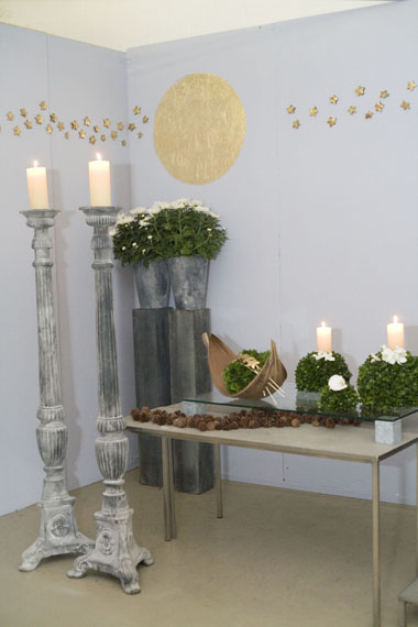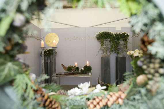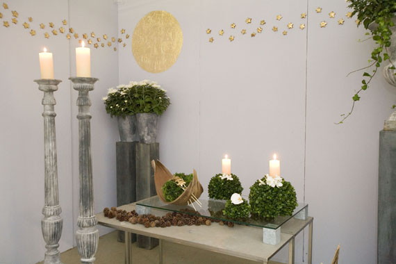 Sandra Maarsen dekorierte die Berner Blumenbörse zum Thema Grün und Kerzenlicht.