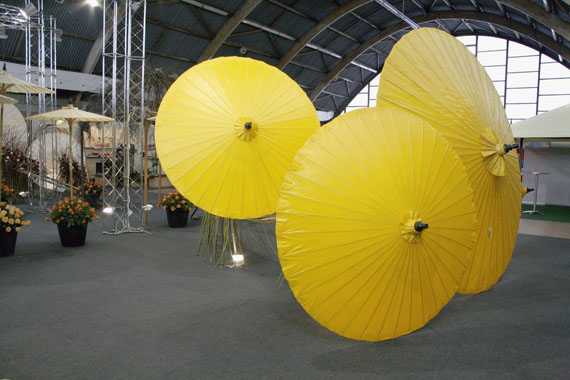 Für die Erlebnisschau «Rosenzauber» liessen sie sich Christiaan und Sandra Maarsen einiges einfallen. Mit grossen, asiatisch inspirierten Papierschirmen entstehen leuchtende Blumeninseln; im kleinen Gartenpavillon können die Besucherinnenund Besucher kurz verweilen, dem Plätschern des Brunnens lauschen, den feinen Duft der Rosen einatmen und die Farbenvielfalt geniessen.